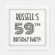 Den här snyggten och 1920-talet/1930-talet inspirerade stil till 59-9-årsfirandet av den pappra napkin-designen har en personlig namn, ett finare art deco-utseende inspirerat nummer "59:e", meddelandet "FÖDELSEDAGSFEST!" och ett gräns med flera linjer. Lustigt födelsedag sådana pappra blöjor kan användas vid party i firande på någons femtionionde födelsedag. [~Z0000613]
