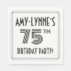 Den här snyggtens sjuttiofemte födelsedagsfirande/party papper napkin-design har ett eget namn, ett intrikat konsthände som ser inspirerat nummer "75:e", meddelandet "FÖDELSEDAGSFEST!" och ett gräns mönster som består av linjer. Elegantens födelsedag kan sådana pappra servetter användas vid en födelsedagsfest i firande på någons 75:e födelsedag. [~Z0000613]