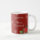 Denna slående jul mugg bilder och elegant dam, med röda poinsettimier, i en Art Deco inspirerade stil. Å andra sidan finns det en "God jul hälsning i återtypografi, dekorativt snöflingor och eget namn. Mugg är ett öga-fångsttillskott till kaffet bord och köket och är en idealisk helgdag för älskare av vintage-inspirerat stil. Klicka på "Anpassa" om du vill lägga till det namn som krävs i designen före utcheckningen.