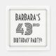 Den här eleganten och 1920-talet/1930-talet inspirerade stil till fyrtiotredje födelsedagsfirande/party papper napkin-design har ett anpassade namn, ett finare art deco-utseende inspirerat nummer "43:e", meddelandet "FÖDELSEDAGSFEST!" och ett gräns-format. Pappra servetter som dessa kan användas vid ett party som hålls i firande på någons 43-årsdag. [~Z0000613]