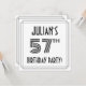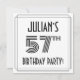 Snyggtens framsida och 1920-talet/1930-talet inspirerade stil till 57-7-årsfirandet/utformningen av inbjudningskort för fester har ett eget namn, ett finare art deco-utseende inspirerat nummer "57:e", meddelandet "FÖDELSEDAGSFEST!" och ett gräns mönster som består av linjer. Baksidan innehåller information om personligen om händelsen, t.ex. datum, tid, plats/plats och all annan information som kan vara viktig. Elegant, lyxiga, redigerbara inbjudningar som dessa kan användas till inbjudan som deltar i en födelsedagsfest/sammankomst som hålls i firande på någons 57-årsdag. [~Z0000614]