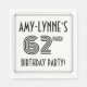 Den här eleganten och 1920s/1930-talet inspirerade stil till 62-sekundersmodell för födelsedagsfest/firande papper napkin-design med ett eget namn, ett finare art deco stil inspirerat nummer "62nd", meddelandet "FÖDELSEDAGSFEST!" och ett gräns med flera rader. Pappra servetter som dessa kan användas när man firar någons sextioårsdag. [~Z0000613]