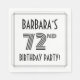 Denna lyxiga och 1920s/1930-talets stil inspirerade 72-sekundersmodell av papper napkin-födelsedagsfest har en personlig namn, ett finare art deco-utseende inspirerat nummer "72nd", meddelandet "FÖDELSEDAGSFEST!" och ett gräns med flera linjer. Pappra servetter som dessa kan användas vid en födelsedagsfest som hålls i firande på någons sjuttioandra födelsedag. [~Z0000613]