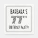 Den här elegantens sjuttiosjunde födelsedagsfestens pappra napkin-design har en personlig namn, ett finare art deco-utseende inspirerat nummer "77:e", meddelandet "FÖDELSEDAGSFEST!" och ett gräns mönster som består av linjer. Lustigt födelsedag sådana pappra servetter kan användas i party för någon som firar sin sjuttiosjunde födelsedag. [~Z0000613]