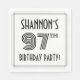 Den här eleganten och 1920-talet-1930-talet inspirerade stil till nittiosjunde födelsedag/party papper napkin-design med ett eget namn, en komplicerad konst deco stil inspirerade nummer "97:e", meddelandet "FÖDELSEDAGSFEST!" och ett gräns mönster som består av linjer. Pappra servetter som dessa kan användas i en födelsedagsfest till någon som firar sin 97-årsdag. [~Z0000613]