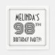 Den här eleganten och de tjugonionde årsjubileet inspirerade till 98-årsfirandet av den pappra napkindesignen har en personlig namn, en finare art deco stil inspirerade nummer "98:e", budskapet "FÖDELSEDAGSFEST!" och en gräns mönster som består av linjer. På födelsedagen kan pappra servetter som dessa användas vid ett party som firar någons 98-årsdag. [~Z0000613]