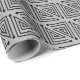 Detta omslagspapper har ett Art Deco-mönster gjort av en rät vinkel med en labyrint inuti i svart på en grå bakgrund.