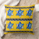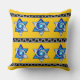 Och en strålande, solig "Bra Morgon" till dig! Det är budskapet som du hälsas med när du drastiskt går genom vardagsrummet till köket och sätter ögon på extra-klumpen, extra-kushy, extra lycklig tittar dekorativ kudde med Leslie Sigal Javoreks ursprungliga blåvita och vita nedfläckad stjärnor av David, i två rader av tre stjärnor åtskilda av rand av en silvery-gig nyckel mönster på & är inställd på en ljus taxi-gult-bakgrund. På baksidan är samma gult i sig.