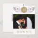 Tack vare det moderna "Art Deco"-kortet i stil är det perfekt för det moderna bröllop. Vackra snurrar och ett monogram visas på det här tackkortet. Det här tackkortet finns i en lila och en gyllene/taupskad.