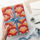 Omslagning papper i en återgivning av en stiliserad Art Deco lily, tapet mönster - en övertoning av djup orange till vit, accentuerad med senap guld, på djup orange bakgrund