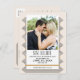 Det här sparar datumet för vykort med guld och svartkonsdeco vågrät linjer och ett anpassade-foto ram. Med texten under fotot kan du lägga till information om bröllop. På baksidan finns anpassadets returadress text.