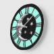 Art Deco Måne och Stars - Black, Aqua och Silver Stor Klocka