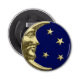 Klassisk Art Deco måne och stjärnor i borstat metalliskt guld, med ett emalutseende mitt i natten blått/indigo bakgrund