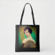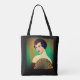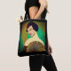 I ett modernt, halvabstrakt konst Deco inspirerade porträtt till ett dam, som höll ett fläkt, mot bakgrund av en grönt och guld färgad