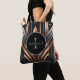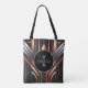 A luxurious Art Deco design featuring a bold central circle with a customizable monogram letter intersected by a personalized name. Polished copper and metallic silver geometric elements create a striking symmetrical composition against a deep matte background. The clean intersection of the letter and name adds a refined personal touch.