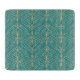 Art Deco-mönster med gyllene geometriska former på en turkos bakgrund, med symmetriska fläkt- och sicksackmönster. Elegant, klassisk och retro stil.