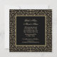 Bröllopsinbjudan & Förlovningskort "Spara datum" - Annonser, fyrkantiga inbjudningskort inspirerade av Hollywood Regency, Great Gatsby-eran från 1920-talet, innehåller matchande inbjudningar till bröllop, brudvisning eller formella evenemang. OBS: Detta är en platt tryckt brevpapper, det finns inga lager, upphöjda element eller guldmetallbläck använda. Allt är grafiskt producerat för att se mycket realistiskt ut. FÄRGPALETT: svart och guldmetalutseende DESIGNKOLLEKTION: Detta är en Art Deco, Art Nouveau-era inspirerad "Black Tie" värdig, formell kortuppsättning. Med hjälp av vintage-rullade etsdesigner har vi skapat ett elegant vackert formellt men modernt diamantformat spetsmönster. Exklusiv handskriven kalligrafisk typsnitt