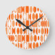 Den här klockan har en konsthandbok som består av ovaler och halva ovaler i vitt och nyans av orange.