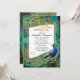FÖDELSEDAGSFIRANDE ÅT ALLA ÅR: "Art Deco Påfågel Guld Glitter Hollywood Födelsedagsfest Inbjudan." Chic Great Gatsby-era stil, men vackert designad på ett sätt som sticker ut den för exklusiva evenemang. Denna bröllsamling inspirerades av det gamla Hollywood och dess storhetstids glamourösa era. En födelsedagsinbjudan som är perfekt för eleganta, sofistikerade, moderna formella eller svarta band-evenemang och firanden. Klassiska, vackra virvlande rullande blomsterornament i rik teal och akvamarin är en del av en collagebakgrund som framhäver den ensamma påfågeln som ser tillbaka över axeln mot inbjudantexten. På baksidan finns en komplett påfågelsfjäderuppsättning, sammanställd med närbilder