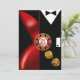 Ett snyggt Art Deco-par iklädda svart klänning - hon i en djupt urringad röd klänning och han elegant i en svart smoking. Mittenfiguren är ett kasinochip där du kan föra in din födelsedags siffra eller namn - och fallande guld tärningar. Denna mångsidiga, trendiga inbjudan är perfekt för alla speciella tillfällen - pensionsfester, stora födelsedagar, cocktail- och middagspartyn, välkomstmiddagar, bröllopsfestligheter, årsdagar, semi-formella och formella evenemang eller festliga högtidssoaréer. Lätt att anpassa, använd knappen "Anpassa" ovan för att lägga till din egen text. Matchande presentetiketter finns också. För frågor eller specialförfrågningar, vänligen kontakta designern på cheryl@cheryldanielsart.com. Om denna inbjudan inte