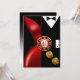 Ett trendigt Art Deco-par iklädda svart klänning med slips - hon i en röd klänning med djup dekolletage och han elegant i en svart smoking. Mittenfiguren är ett casinochip som innehåller siffror för 40-årsdag samt fallande guld-tärningar. Denna mångsidiga och trendiga inbjudan är perfekt för alla speciella tillfällen - pensionsfester, jubileumsfödelsedagar, cocktail- och middagspartyn, välkomstmiddagar, bröllopsfester, årsdagar, semi-formella och formella evenemang eller festliga högtidsfiranden. Lätt att anpassa, använd knappen "Anpassa" ovan för att lägga till din egen text. Matchande presentetiketter finns också. För frågor eller specialförfrågningar, vänligen kontakta designern på cheryl@cheryldanielsart.com. Om denna inbjudan inte är