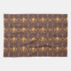 Art Deco pattern with fan-shaped motifs in orange and dark purple. The geometric design is repetitive, reflecting a vintage, elegant style.