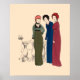 Detta är ett digitalt utökat tryck av en vintage från 1908 Art Deco mode som illustrerar tre Paul Poiret-klänningar av Paul Iribe. Du kan anpassa bakgrunden till färg.