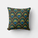 Art Deco Peacock Feather Pattern Throw Pillow Kudde