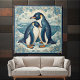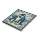 Art Deco Penguin Ice Bird Couple Snow Ocean Floral Kakelplatta