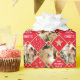 Backa Julklapp i Art Deco stil med den här anpassningsbarnas fotopresentfigursättning! En sömlös geometrisk mönster, med diamantformer, stjärnor och snyggt. Anpassa mallen med tre favoritfoton, mottagarens namn och födelsedagsålder. Ett lyxigt och unikt sätt att fira festsäsongen för familj och vänner! Tryckt färg: rött, vitt och guld. Tillgänglig med ett urval av projektionsyta eller glansig avsluta.