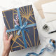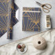 Denna papper har konsthandledning av diamanter och trianglar i guld på fält av blått.