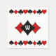 Poker Party Napkins med en originell, Art Deco-inspirerad design som använder de fyra internationellt erkända symbolerna för varje spelkort kostym (hjärtan, diamanter, spade och klubbar) i Vermiljon Red and Black mot skarp vit, PLUS en anpassningsbar fält för ditt monogram. Spara BIG genom att beställa i bulk! Kolla in IconDoIt samordnar produkter.