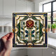 Art Deco Rose Red Blue Green Gold Floral Art Tile Kakelplatta