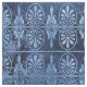 Den här konsthandlingen och den grekiska inspirerade designen har en tryckt blå bakgrund med ornate light blue fläkt och rullwork.