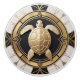 Art Deco Sea Turtle Black White Guld Ocean Life Knopp