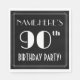 1920-talet-1930-talet inspirerade stil till nittioårsfirandet av den pappra napkin-designen har ett anpassat namn, ett okomplicerat konsthändelse som ser inspirerat nummer "90:e", meddelandet "FÖDELSEDAGSFEST!" och ett gräns med flera rader. Den har som standard en bakgrund med svart färgad, men kan anpassas till ett annat färg om så önskas. Lustigt födelsedag sådana pappra servetter kan användas vid en födelsedagsfest som firar någons 90:e födelsedag. [~Z0000612]