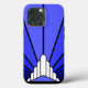 En klassisk konst deco stil sol mönster skapat i blått. En ikonisk mönster i sol stigning bakom ett stiliserat konsthändelsemönster som formade byggnad. En enkel men ändå elegant-design som är sann mot tidsåldern.