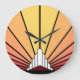 En klassisk konst deco stil sol mönster i gryningen färg. En ikonisk mönster i sol stigning bakom ett stiliserat konsthändelsemönster som formade byggnad. En enkel men ändå elegant-design som är sann mot tidsåldern.
