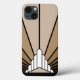 En klassisk konst deco stil sol mönster skapat i tan. En ikonisk mönster i sol stigning bakom ett stiliserat konsthändelsemönster som formade byggnad. En enkel men ändå elegant-design som är sann mot tidsåldern.