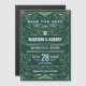 Art Deco-spara datum Bröllop Elegant Guld Grönt Magnetisk Inbjudningskort