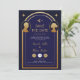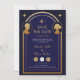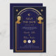 Meddela din speciella dag med tidlös elegans med den här Art Deco Spara datuminbjudan. Med vintage-inspirerade silhuetter, en lyxig marin palett och guld och förfinad typografi fångar den här designen grandeur från en gammal era - perfekt för snyggt bröllop firande. Perfekt för: Elegant bröllop sparade datumna Gatsby eller Art Deco Temed bröllop Vintage inspirerade bröllop-stationära bröllopsinbjudningar