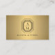 En logotyp för elegant, konsthändelse som innehåller initialer i ett staplat mode är svart inramad på denna design för det faux metalliska affärskortet guld. Kortet på dubblan ger dig gott om utrymme på baksidan för din kontaktinformation och information. En snyggt skapat för designers, stilister, salonger, boutiques, författare eller andra yrken som tittar för ett kreativ kant. Art och design © 1201AM