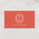 En logotyp för elegant, konsthund som innehåller initialer i ett staplat mode är inramad i vitt på affärskortet för det ljusa korallet. Kortet på dubblan ger dig gott om utrymme på baksidan för din kontaktinformation och information. En snyggt skapat för designers, stilister, salonger, boutiques, författare eller andra yrken som tittar för ett kreativ kant. Art och design © 1201AM