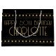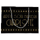 Lägg till en liten bit av Art Deco stil med den här anpassningsbarnas presentväska! En elegant med stjärnrader och retrotypografi som framkallar en känsla av nostalgi och glamor. Anpassa mallen med mottagarens namn och födelsedagsålder, eller anpassa texten till årsdagar, jul, helgdagar och mycket annat! Tryckt färg: svart och guld.