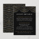 Har du ett Great Gatsby-tema på din bröllopsfest? Ge dina gäster alla andra specifika detaljer om bröllopet. Detta Art Deco-inspirerade brölloppskort med detaljer till gästerna har en design med gyllene och vita strängar av lampor på en rik svart bakgrund och vit text. Anpassa det och gör det till ditt eget. Du kan ändra text, färg och storlek. Baksidan har ett Art Deco-mönster och det är en perfekt matchning för "Art Deco String Lights Wedding collection", hittar du i min Zazzle-butik.