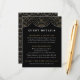 Har du ett Great Gatsby-tema på din bröllopsfest? Ge dina gäster alla andra specifika detaljer om bröllopet. Detta Art Deco-inspirerade brölloppskort med detaljer till gästerna har en design med gyllene och vita strängar av lampor på en rik svart bakgrund och vit text. Anpassa det och gör det till ditt eget. Du kan ändra text, färg och storlek. Baksidan har ett Art Deco-mönster och det är en perfekt matchning för "Art Deco String Lights Wedding collection", som du hittar i min Zazzle-butik.