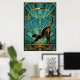 Art Deco Stretching Black Cat Wall Art Poster