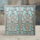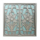 This elegant design moves slightly from pure abstraction to incorporate a stylized floral motif, reminiscent of classic Art Deco and later Mid-Century Modern sensibilities. The composition features two symmetrical lilies framed by strong, rectilinear and arched metal-look structures. Set in a pastel teal background, detailed silver-tone lilies and framework create a sophisticated, high-relief effect. This piece is ideal for adding a touch of timeless, structured elegance to any tile display or accent area. Search ID1196 to see other designs in this series. Note: design adapted from generative content.
