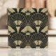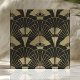 Art Deco svart och guld fläktsmönster Kakelplatta