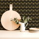 Tillsätt glamour till ditt utrymme med denna fantastiska Art Deco-platta med en slank svart bakgrund prydd med guldfläktsmönster. Den symmetriska designen och djärva geometriska detaljer fångar essensen av 1920-talets elegans, vilket gör den perfekt för backsplash, accentväggar eller sofistikerade inredningsprojekt.